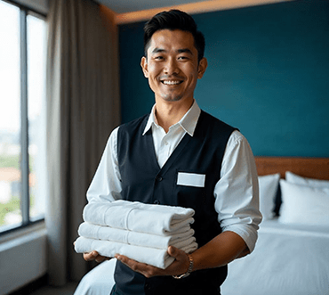 Train to maintain guest rooms with precision and care. Learn bed-making, amenities setup, sanitation protocols, and guest interaction. Perfect for those aiming to start a career in housekeeping and hotel operations.